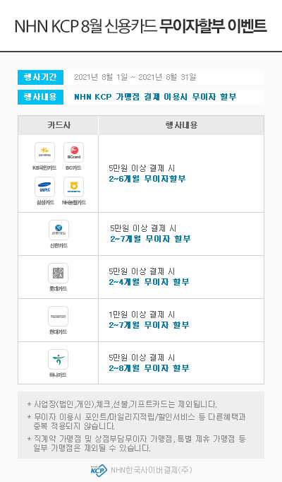 8월 신용카드 무이자할부 이벤트입니다. > 공지사항