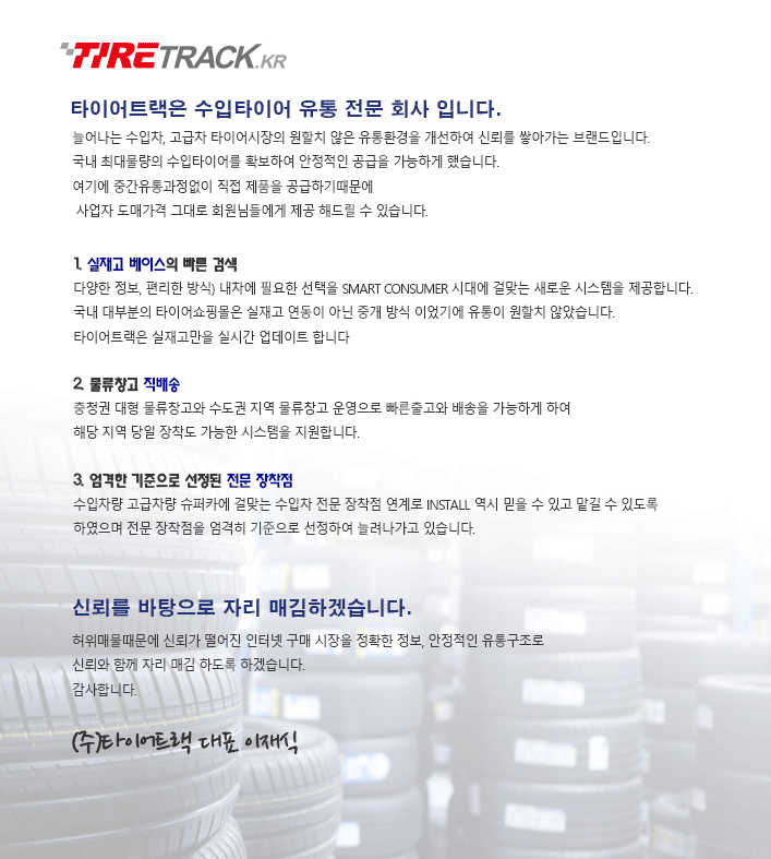 타이어트랙은 수입타이어 전문 유통회사 입니다.